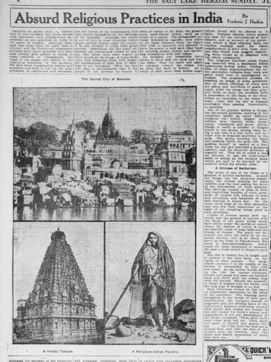 Salt Lake Herald, 1906 “Absurd Religious Practices in India”