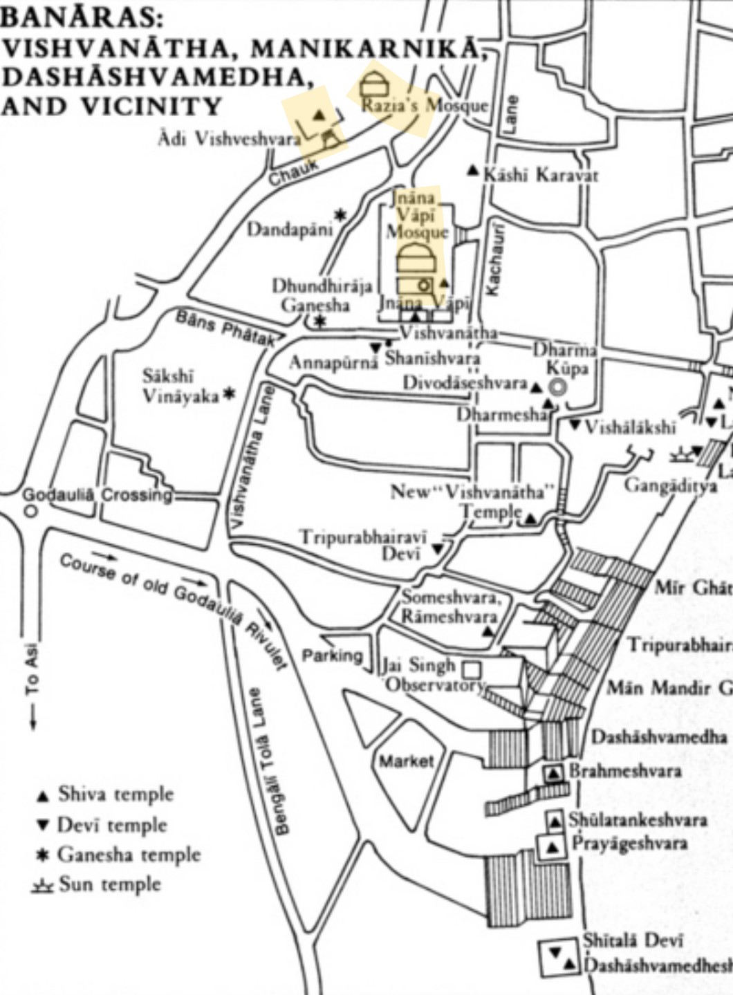 Avimukteśvara was located just to the north of the sacred well, Gyanvapi, where the mosque sits today (Kṛtyakalpataru of Lakṣmīdhara).